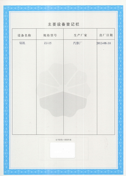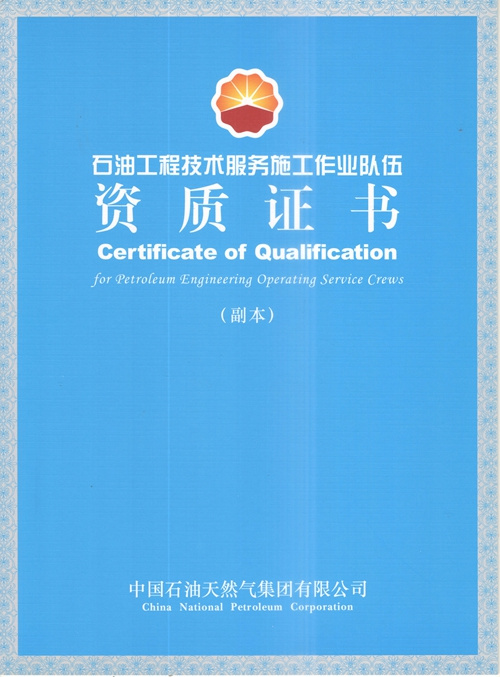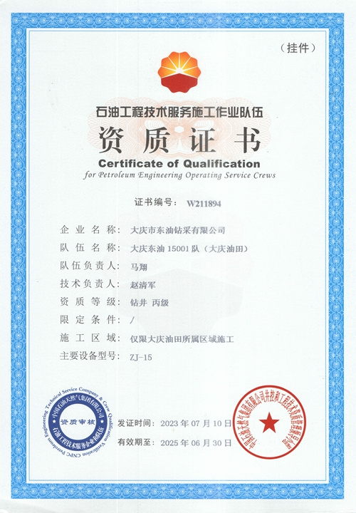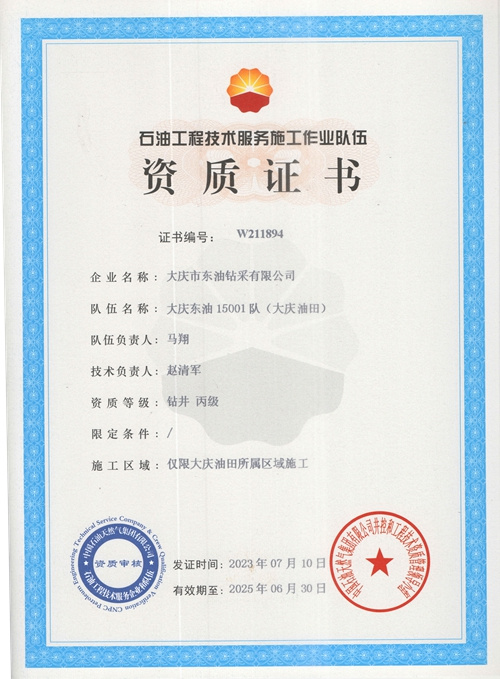 大慶東油15001隊(大慶油田)資質(zhì)證書