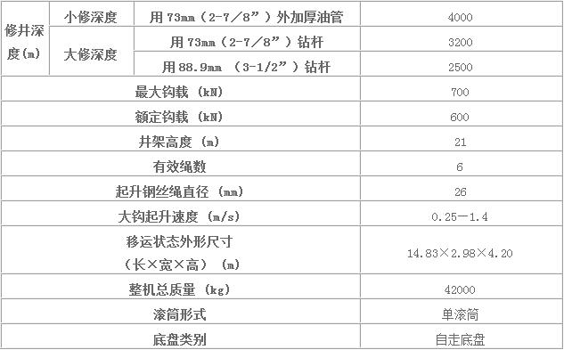 2、XJ700(40噸)無繃繩修井機